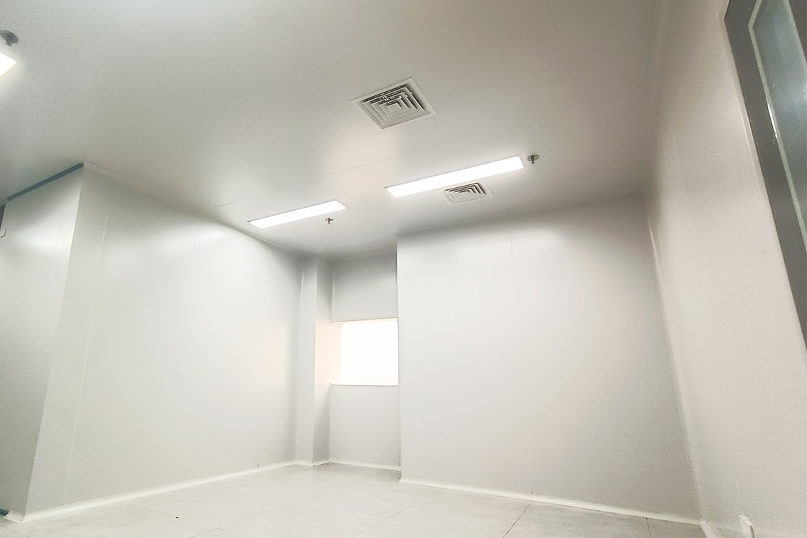 天豐凈化板在墻壁板縫、吊頂、照明、門窗及通風口處的細節(jié)密封進行優(yōu)化設計和安裝工藝,嚴防灰塵與水汽進入,采用裝配式施工技術,提高了醫(yī)院建設的效率和質(zhì)量,縮短了建設周期。