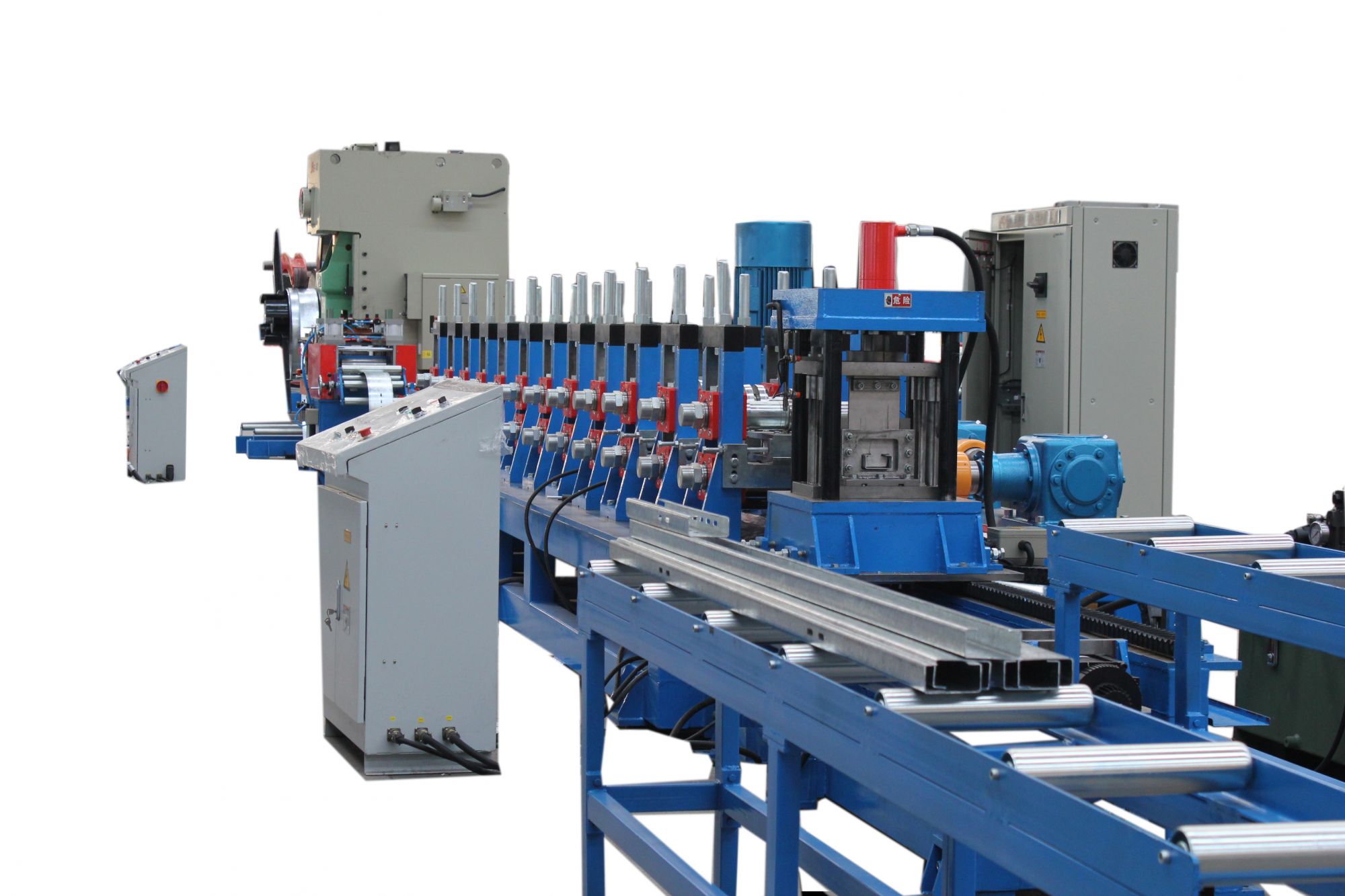 通過切換可生產(chǎn)多種截面、不同規(guī)格支架型材。成品直線度好。該線自動化程度高,速度快,生產(chǎn)線速度:10米/分鐘。