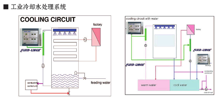 FLUID-LINER 主要應(yīng)用領(lǐng)域是對生產(chǎn)用水的處理。重 點(diǎn)是對鍋爐、換熱器、冷卻塔、水泵、管道、閥門、噴嘴以及與水接觸的設(shè)備表面的有效保護(hù),免遭礦物結(jié)垢現(xiàn)象。