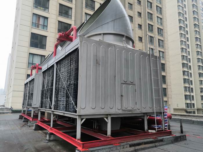 馬達(dá)、風(fēng)機(jī)、減速器(一般為皮帶減速速器),在冷卻塔頂部即為機(jī)械抽風(fēng)式冷卻塔,在冷卻塔底部即為機(jī)械鼓風(fēng)式冷卻塔。